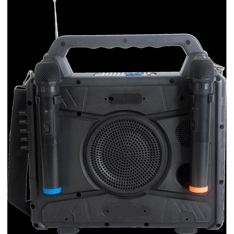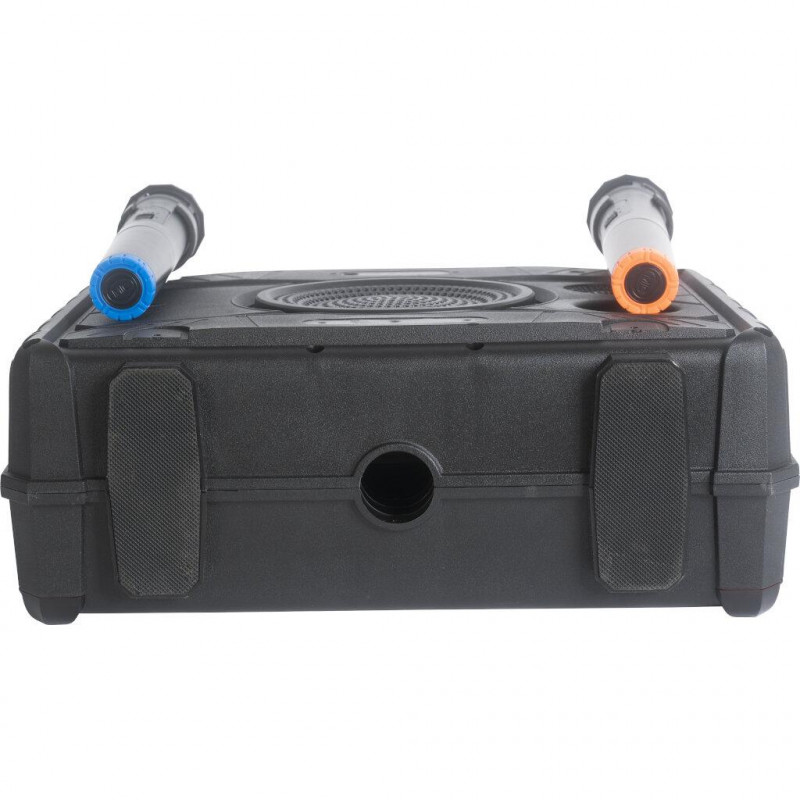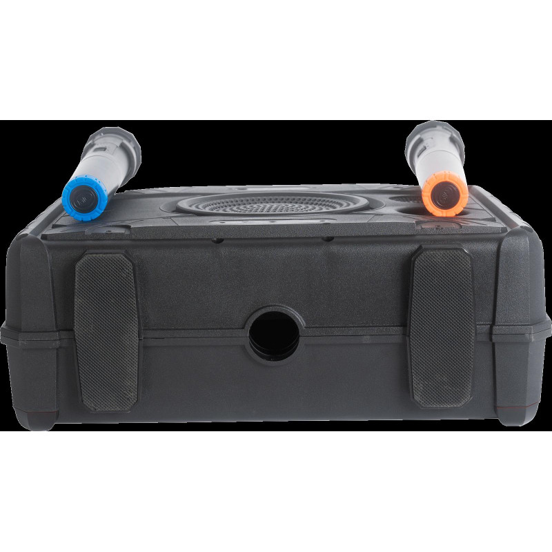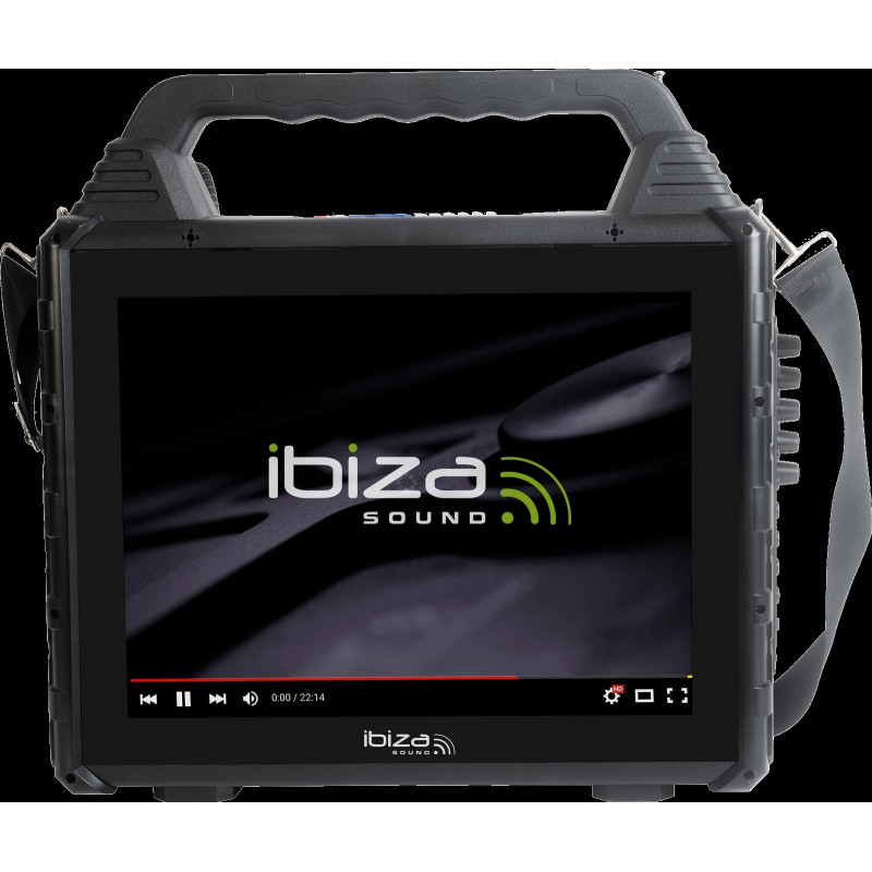 This portable speaker with a 14.1" screen is equipped with a « Mirror Screen » function that allows you to display the screen of your Android Smartphone, IOS or Tablet on the speaker's screen, in order to read the texts of the songs in real time , while you sing