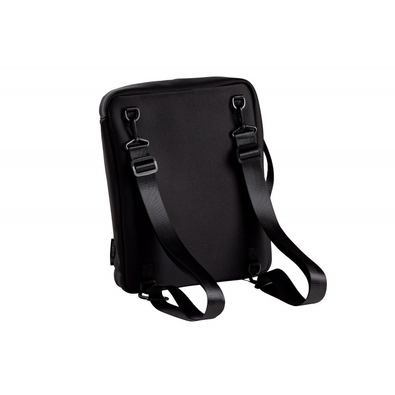 KEYBOARD / ACCORDION CASE / CASE This Monologue laptop case is made of neoprene. It has a convertible design that allows you to change the position of the straps to use the case in two different ways: as a day backpack worn on your back or as a shoulder bag. Internal dimensions: 290 x 70 x 370 mm. Product color: black. Protects equipment from dust, scratches and shocks