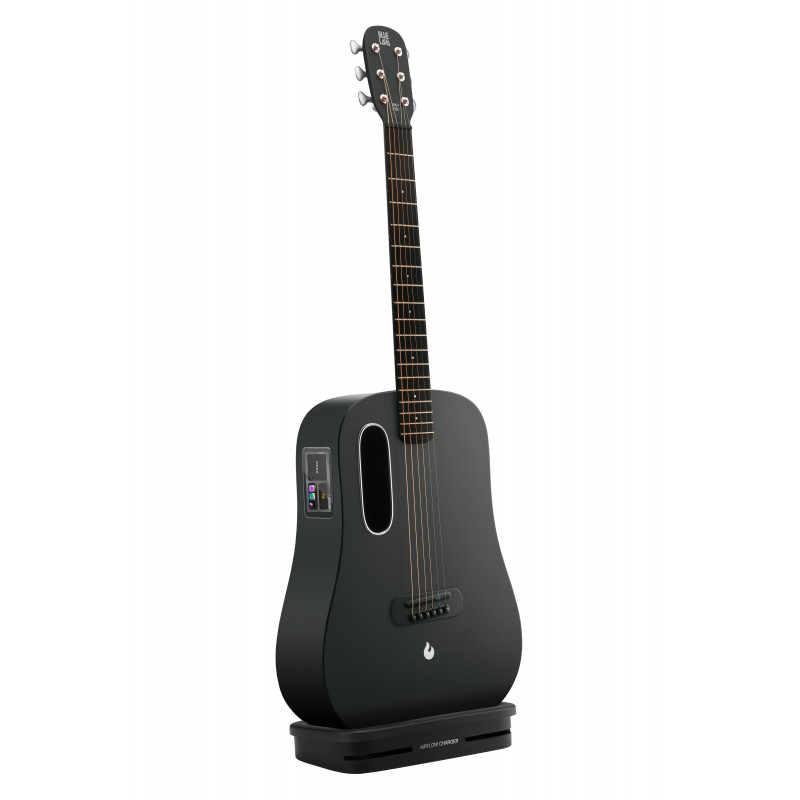 GUITAR FLOOR STAND Wireless charger and stand for BLUE LAVA guitars. Foldable design. Includes USB-C cable. Black finish.