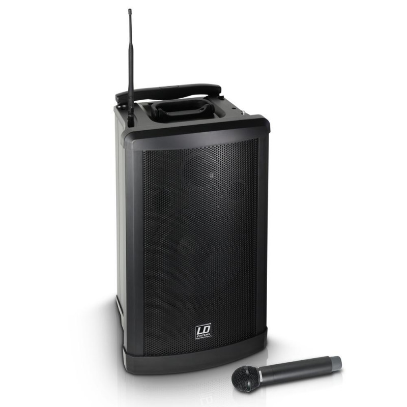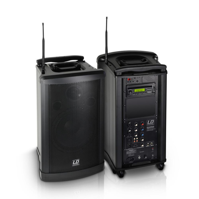 The Roadman 102 is a compact and mobile PA solution with integrated battery. This system is perfectly suitable for solo entertainers, churches, schools, business conferences or presentations where versatility is required. The Roadman comes with a CD/MP3/USB/SD Player as well as a wireless microphone unit with handheld mic. A second wireless microphone unit are also available in option.