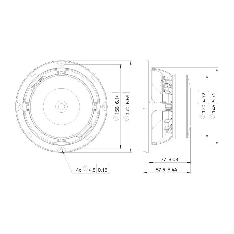 150 W AES, 8 ohms, 91 dB, 65-6000 Hz