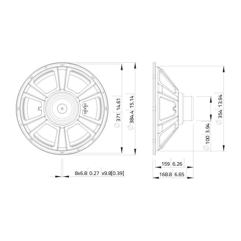 400 W AES, 8 ohms, 98 dB, 50-3000 Hz