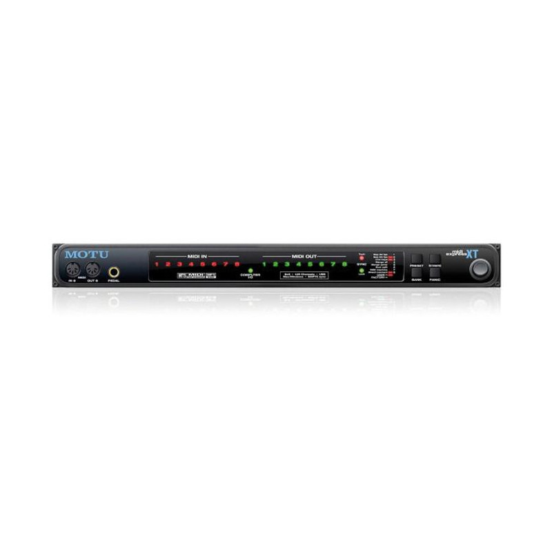 MIDI-USB INTERFACE 128 channel MIDI interface 8 MIDI in 8 MIDI outs SMPTE code Connectable via USB port for PC/MAC Expansion - MOTU MIDI interfaces grow with you. Expanding them is simple. Add additional MIDI ports by connecting new MOTU MIDI interfaces. Compatibility - Work with your favorite software seamlessly. Drivers are included for Mac OS9 and Mac OS X and also for Windows Me/2000/XP. High speed USB connection. USB-Powered - Powered from the USB port All MOTU interfaces make full use of the high-speed characteristics of USB ports, achieving sub-millisecond timing accuracy and perfect synchronization of MIDI events. Also with useful hot-pluggable features