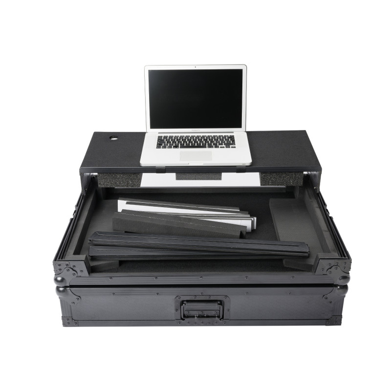 Heavy duty carrying case for DJ controller. Includes several foam pieces of various sizes to accommodate several models of extra-large controllers. Constructed from 9mm laminate veneer and the new super durable Honey Comb hexagonal exterior, it also includes robust steel ball corners, solid butterfly latches and a strong retractable handle. Thanks to the integrated sliding laptop platform and convenient cable access port, your setup is ready for action in seconds. Measurements: exterior 82.5 x 55.5 x 23 cm, interior 72.5 x 40.5 x 4.5 cm. Weight: 16.6Kg.