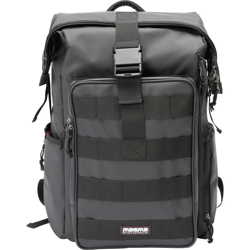 Constructed of 100% waterproof PVC Tarpaulin. Soft quilting fabric. Water-repellent PVC-coated handles. Lockable handles on main and laptop compartments. Flexible height adjustment through Rolltop closure. Main compartment that includes removable interior foam on the bottom and sides. The included protective panel protects jog wheels and faders and the folding top works as an additional cover for example when storing battle tables. Separate side entry compartment provides quick access to your laptop (up to 17''). Large accessory pocket with zippered interior pockets and organizers. 1 quick access side pocket for small accessories. 1 side bottle pocket. Padded back panel with airflow system, ergonomic backpack straps and chest fixation. Detachable trolley belt. Compatible with hand luggage (up to 56 cm high). Side access zippered laptop compartment with waterproof handles (up to 17''). Exterior measurements: 49-65 x 38 x 26 cm. Interior measurements: 47-56 x 32 x 20 cm. Weight: 2.4kg. Color: black/red.