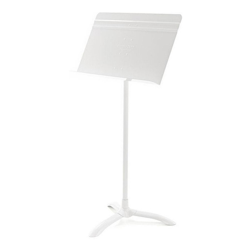 ORCHESTRA STAND 'Orchestra stand. Tilt tray. One hand height adjustment. White satin aluminum. Strong chrome inner tube. ''Heavy Duty'' steel foot. 20" x 12.5" tray. Height adjustable from 26" to 48". Weight 3.3 Kg. Made in the USA.'