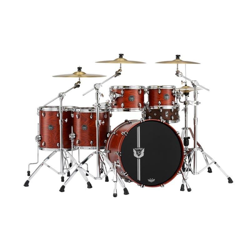 MAPEX BATTERY. SATURN SESV628XCME. 30 ANNIVERSARY. Garner Flame 30th Anniversary Special Edition Composed of: * 22 "x18" Bass Drum. No mount * 10 "x 7.5" Tom * 12 "x 8" Tom * 14 "x14" base * 16 "x16" base * TH800 x 2 single tom holder 100% American maple wood shells. 8-ply bass drum, 7.9mm thick. Toms with 6 layers. 6.2mm thick Chrome acorn and hoops New SONIClear system for toms and legs. New design of the kick claws. Remo UT Heads The MAPEX 30th Anniversary Limited Edition Drum Kit inherits the spirit of the "Orion Classic" series drum kit, the most representative sound of MAPEX drums in the 90s. Made of maple wood 100% North American like the original Orion Classic series. The sound characteristics of this drum kit provide warmth, presence and projection, while the most modern features developed through the Mapex Design Lab allow for an even warmer sound with minimal vibration transfer and maximum resonance.