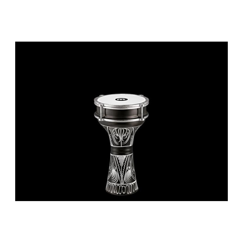 DOUMBEK 'Darbouka 6 1/2' 'X 12 3/4' '. Turkish style. Made of aluminum. With replaceable synthetic patch (Part not included). Finished in black and engraved with floral motifs made by hand.