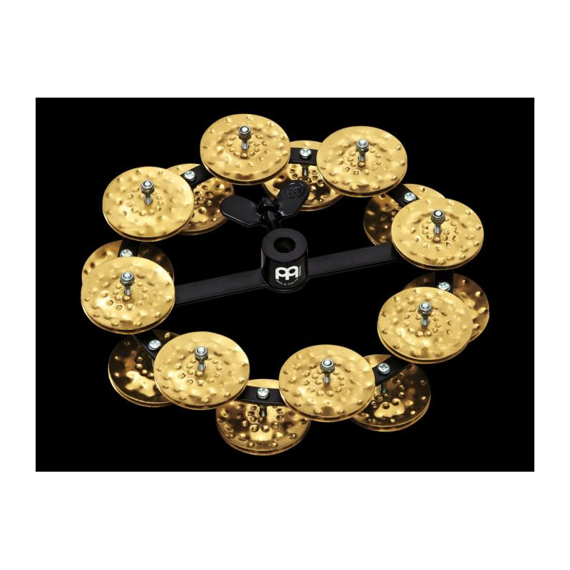 PANDERO / PANDERETA Tambourine for hihat with two rows of jingles. The Meinl HTT2B-BK hi-hat tambourine is an ideal way to add that hi-hat tambourine sound to your patterns. With a simple wing nut mechanism, the tambourine attaches quickly and easily to the hi-hat drawbar. Coated with a rubber layer, your drumsticks will hardly suffer and the sound will be clean and undistorted.