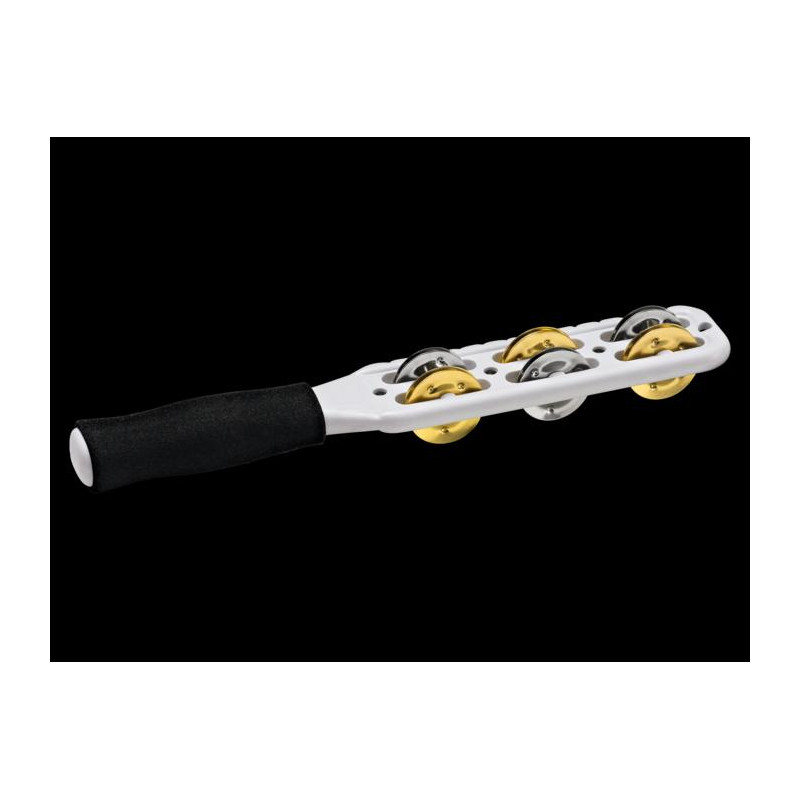 HAND PERCUSSION INSTRUMENT Rattle with handle. The Jingle Stick Meinl JG1M-WH mounts nickel silver plated steel and solid brass rattles that provide a particular and unique sound. The frame is made of plastic and has a padded grip for added comfort.