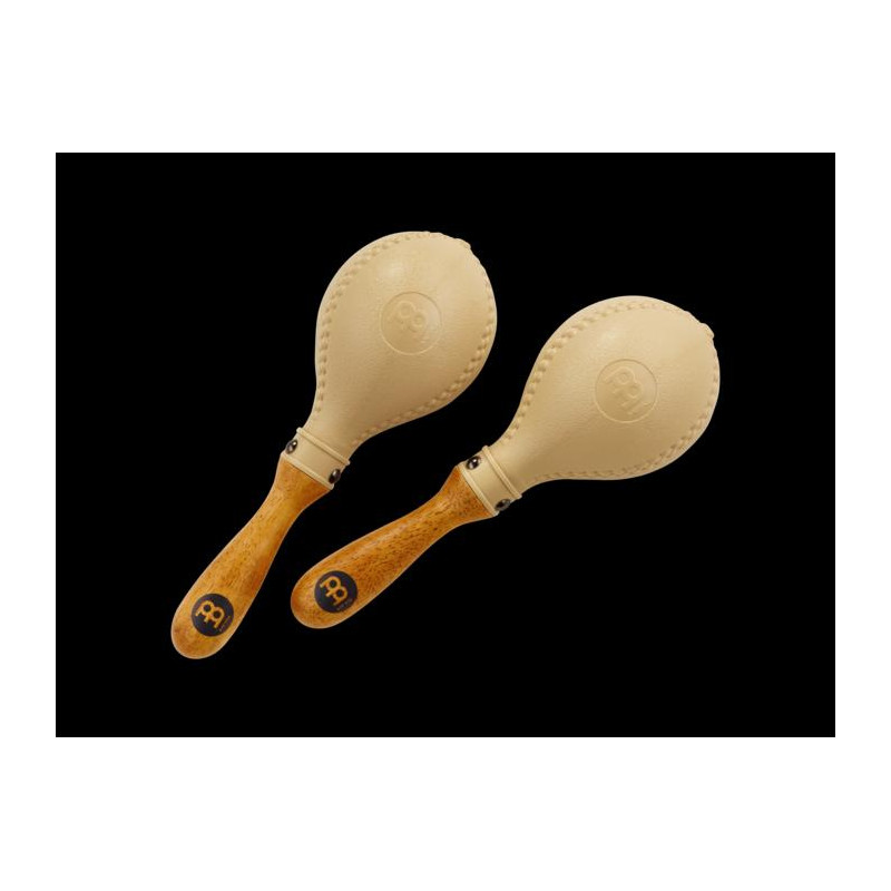 MARACAS Plastic maracas. The Meinl PM2BG are a pair of sitting maracas with wooden handles, an ergonomic shape and beige plastic heads. PM2BGs produce strong and powerful resonance.