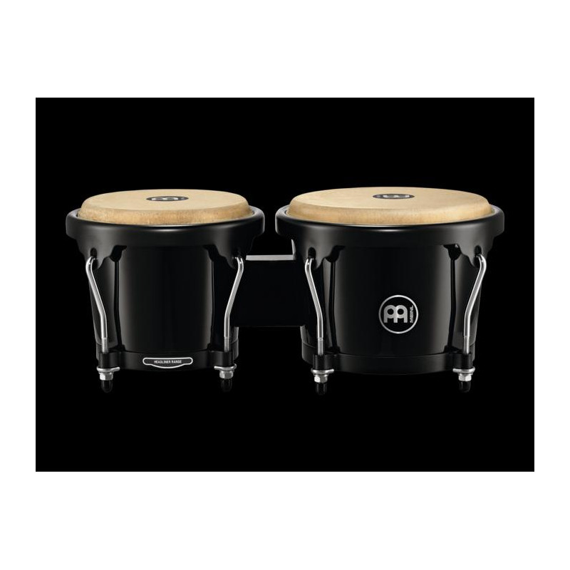 BONGOS 'Set of fiber bongos (6 3/4' 'male / 8' 'female), Black color. Made of fiberglass and hand selected buffalo leather patches.