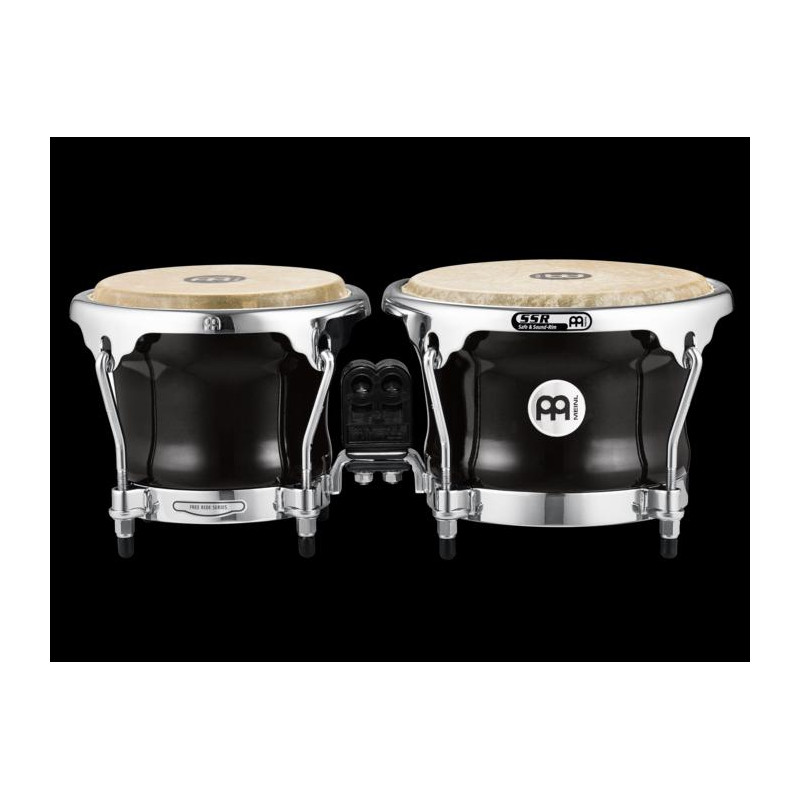 BONGOS 'Set of black fiber bongos (7 and 8 1/2' '). An excellent bongo with the innovative Free Ride system that does not pierce the hooves thus increasing resonance and volume. The body is fiberglass and the hand-selected buffalo leather patches. In addition they mount a patented and plastic central piece that allows a total fastening to the bongo foot if required.