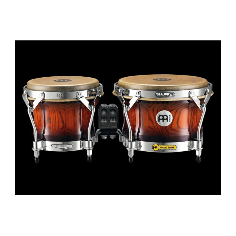BONGOS 'Set of Antique Mahogany Burst bongos (7' 'and 9' '). Woodcraft series. An excellent bongo with the innovative Free Ride system that does not pierce the hooves thus increasing resonance and volume. The body is American ash and the hand-selected buffalo leather patches. In addition they mount a patented and plastic central piece that allows a total fastening to the bongo foot if required.