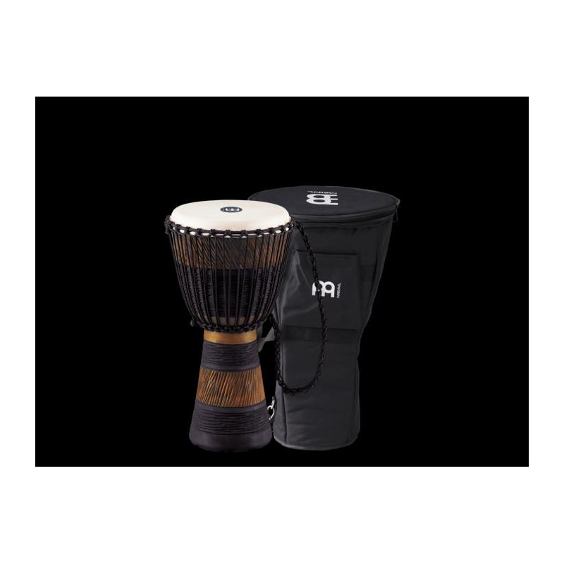 DJEMBE 'Wooden djembé and size 10' 'cover. Equipped with hand-selected goatskin patches and nylon tuning strings to provide optimum tuning. The impressive Meinl djembes stand out for their traditional and exotic graphic art. 100% carefully crafted and meeting Meinl's high quality standards.