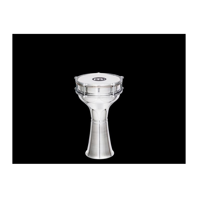 DOUMBEK 'Darbouka 7 1/4' 'X 13 1/3' '. Turkish style. Made of aluminum. With replaceable synthetic patch (Part not included). Silver colour. Includes tuning key