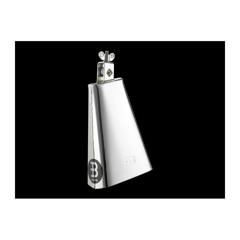 HOOD 'Cowbell STB80B-CH 8' 'chrome finish by Meinl. These cowbells are made of alloy steel and their surface has been chromed. This fact makes them have a more vivid sound and richer harmonics. They also mount a fastening system that does not allow the cowbell to move once we have anchored it in the desired place.