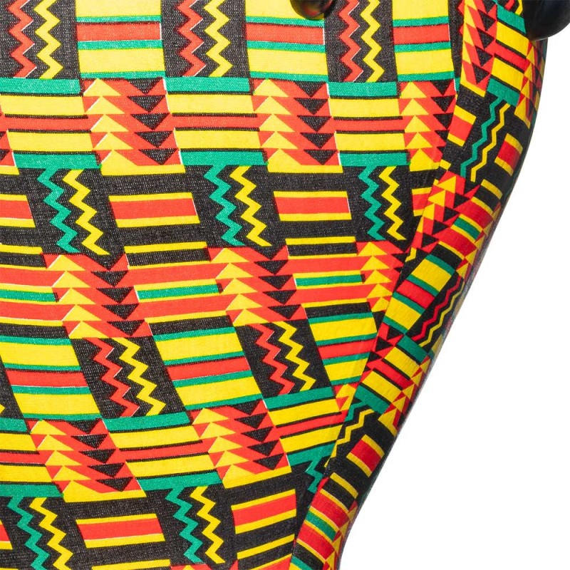 DJEMBE Created with a deep bass tone with a free resonance as its most determining point, the Meinl Jumbo Djembe tries to obtain big sounds with all-weather materials. Available in a variety of diameters, these djembes produce a remarkably wide range of tones, from booming bass to treble. The 100% synthetic head and shell do not go out of tune with changes in temperature or humidity and combine to deliver crisp, clear highs and robust bass. The lightweight construction makes this djembe an ideal travel companion. An easy-to-use mechanical tuning system is anchored by heavy-duty hardware to ensure consistent, reliable sound. Whether at home, on stage or in a studio, the Jumbo Djembe is also perfect for use in classrooms and workshops.