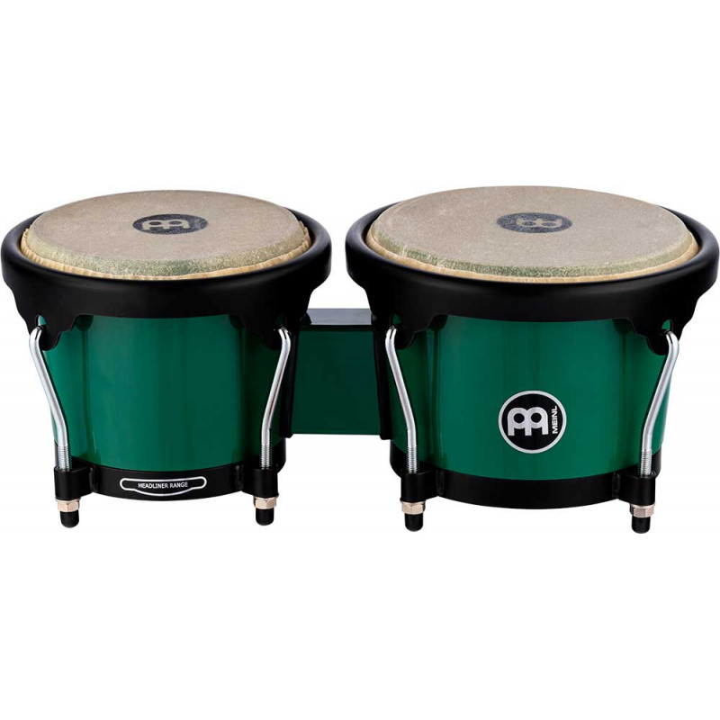 BONGOS 'ABS bongo finished in forest green with measurements 6 1/2'' & 7 1/2''. The hardware is all black. Hand-selected buffalo skin patches.