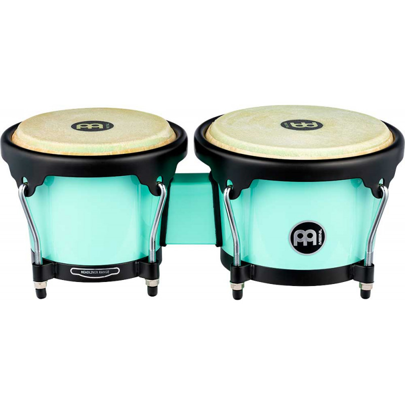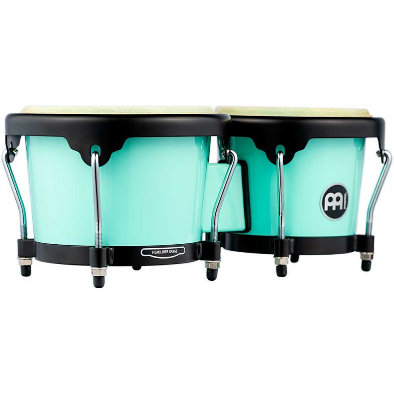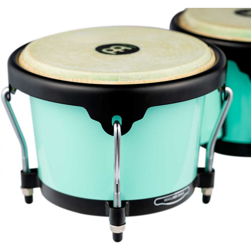 BONGOS 'ABS bongo finished in green with measurements 6 1/2'' & 7 1/2''. The hardware is all black. Hand-selected buffalo skin patches.