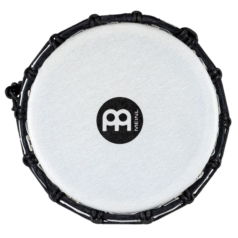 DJEMBE Portable with great sound, excellent tone and lightweight synthetic casing, the Meinl JR. Djembe is the perfect instrument to grab and go for any occasion. From outdoor gatherings with friends to spontaneous jam sessions or teaching others about rhythm, these compact djembes deliver. The synthetic head is secured with pre-tensioned strings to better hold the tuning. Ideal for any age or skill level. Grab and go for any occasion, indoors or outdoors Compact size and lightweight cover Pre-stretched strings Produces high-pitched slaps and deep bass tones 100% synthetic head and cover are perfect for outdoor playing Head diameter :7? (18cm) Height: 12"? (32cm)Color: Galactic Blue Tie Dye