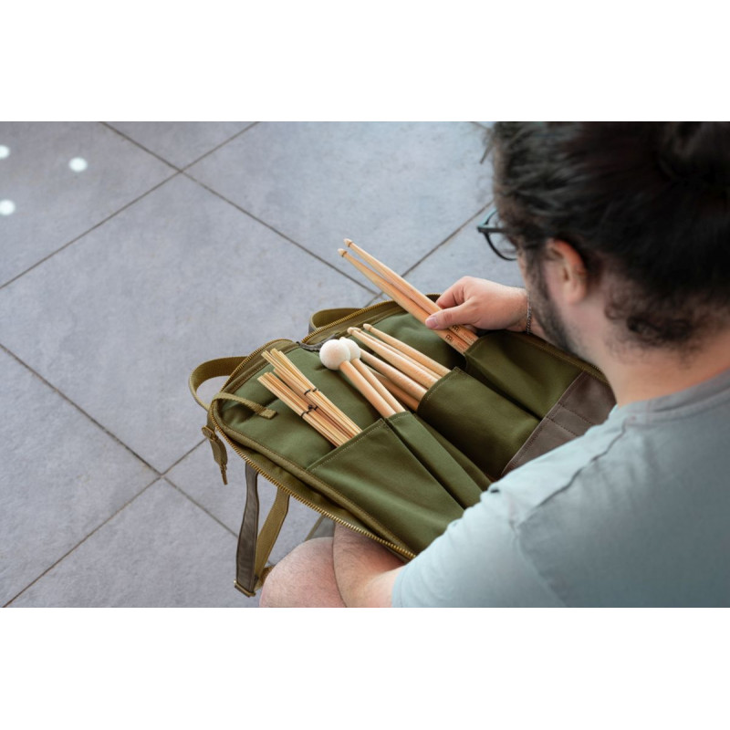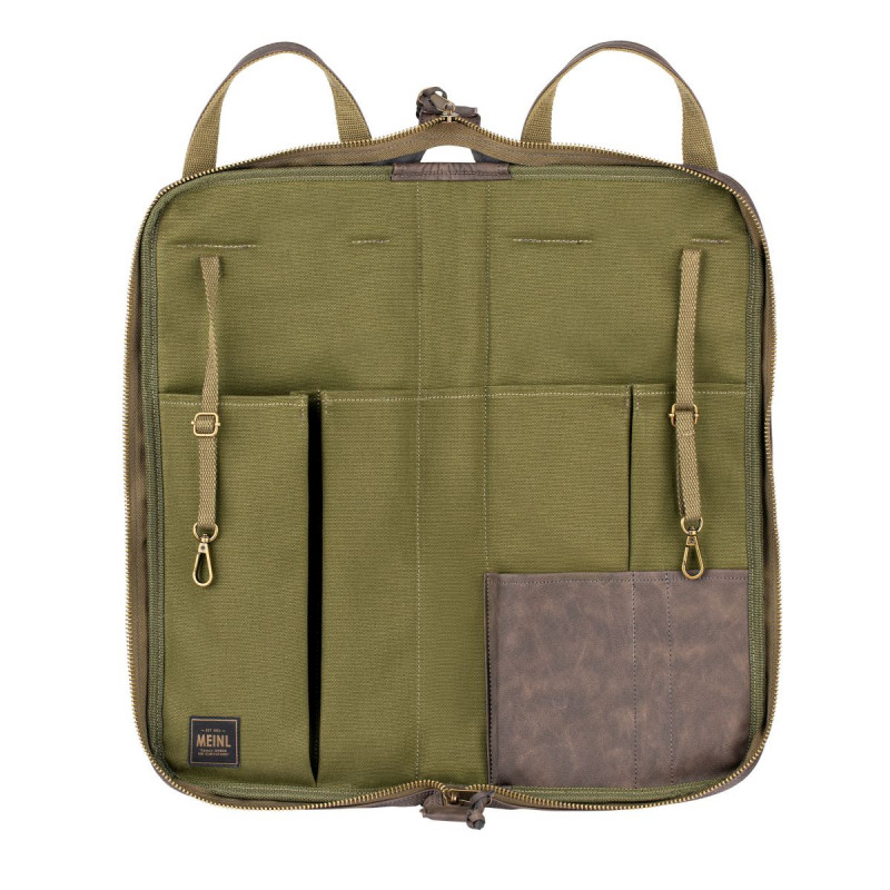 DRUGS CASE The Meinl Vintage Hyde Stick Bag has all the ease of use of a travel bag with a classic look. Our ultra-durable synthetic leather exterior and 24-ounce cotton canvas interior maintain a lifetime of use. Inside the main compartment there are five pockets to organize a large number of drumsticks, brushes, rods and mallets. Additionally, there are three accessory pockets of different sizes to accommodate smaller parts or sound effects. This drumstick bag comes equipped with adjustable length floor hooks and straps to suspend it in an open position. The large quick-access exterior pocket is sized for common accessories or tools and closes to secure your items. An adjustable/removable shoulder strap and reinforced leatherette handles let you comfortably transport this bag to the concert or studio. Getting into the bag is easy thanks to the large zipper tabs that come with long faux leather pulls. Meinl Vintage Hyde bags are designed for understated, timeless style, while being as practical as ever for any type of traveling drummer. Available in black, dark brown or light brown.