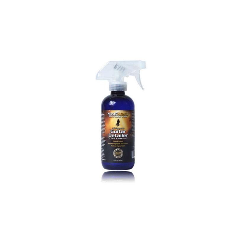 MusicNomad Guitar Detailer Large Guitar Polish Cleaner. Nothing plays better than a clean guitar. MusicNomad's Guitar Detailer puts everything you need to care for your guitar into one easy spray and cleaning product. A single squirt from our sprayer cleans fingerprints, dust and smudges from your guitar's finish like no other product. Whether you're cleaning your electric guitar, acoustic guitar, electric bass or ukulele, we make it easy to care for and maintain. Our biodegradable, silicone-free formula is infused with gloss enhancers and UV protectants to give your guitar a great, long-lasting shine and polish. Our antistatic agents help reduce dust from adhering to your guitar. Small in size but big on results you can take anywhere, and it even smells good.