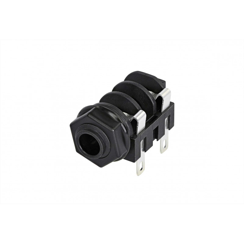 '1/4'' mono jack connector, with switch, with a full thread on the tip and standard solder terminals, includes mounting nut.'