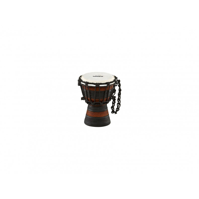 DJEMBE The original African rope-style finished NINO ® wooden djembes are carved from one solid piece of plantation mahogany wood. These high-quality instruments are crafted with great attention to detail to provide exceptional sound. Made of mahogany. XXS size.