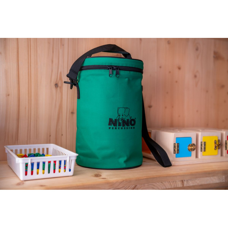 HAND PERCUSSION PACK 'The Nino Percussion hand drum set includes six 8'' hand drums with mallets and storage bag. These drums are made with a synthetic head and shell for durability and a clear percussive sound. The colors are grass green, sky blue, red, yellow, pink and orange. Perfect for classroom music and group collaboration. Suitable for six musicians. Synthetic heads 6 x 8'' hand drums in different colors Includes wooden mallets and storage bag Bag dimensions: 23 x 23 x 35 cm 9'' x 9'' x 13.8'' For 6 children Age recommended: 3+'