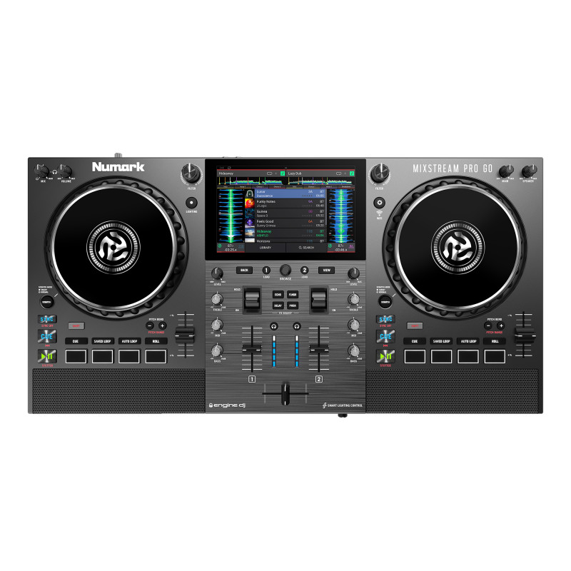 INSTANT VIBRATIONS ANYWHERE From the bedroom to the beach and from the livestreaming studio to the street party, Mixstream Pro Go is always ready for action, wherever you need it. With its built-in rechargeable battery, built-in speakers, Wi-Fi, USB/SD card slots, and wireless lighting control, Mixstream Pro Go is the world's first 100% wireless standalone DJ controller. No longer do you have to be confined to your studio or bedroom, now you can share your mixing skills virtually anywhere. Without cables or computers or disks. MILLIONS OF TRACKS AT YOUR FINGERTIPS Mixstream Pro Go integrates with Amazon Music Unlimited and other popular streaming services, giving you unlimited access to over 100 million tracks across all genres. With this unprecedented music access, you no longer need your own music library to hit the ground running at a party or concert. Built-in Wi-Fi and lightning-fast built-in song analysis let you practice, play, and enjoy music for hours on end. Tracks are analyzed for ppm and key as they are loaded and stored in internal memory, ensuring uninterrupted playback and flawless sessions. SURROUND BUILT-IN SPEAKERS The Mixstream Pro Go's high-quality built-in speakers make it truly self-contained and ready for action right out of the box. These volume-adjustable speakers produce rich, full sound and are the perfect solution for mixing your music on the go. For active DJs, integrated speakers are the ultimate and convenient option for practicing, live streaming, video content creation and personal monitoring when connected to a larger sound system. PUT YOUR SMART HOME INTO PARTY MODE Mixstream Pro Go connects wirelessly to smart home lighting from Phillips Hue and Nanoleaf, making it easy to add dynamic visual effects to your next party or garden. Using the built-in Engine Lighting control, connecting to a Philips Hue lighting hub or Nanoleaf system is quick. Once connected, the smart lighting will respond instantly and dance perfectly to your music. Dynamic on-screen lighting controls let you set the visual mood for any music genre with options for custom color selection, chase pattern, strobe, and more! The lights even respond to movements of the crossfader, volume controls and scratching for an incredible and immersive audiovisual experience. POWERFUL PRO DJ LIGHTING INTEGRATION AND CONTROL For advanced lighting options and features,Professional DJs can pre-analyze their music library with SoundSwitch desktop software, export their library to a USB drive, SD card, or their Dropbox cloud, and have full control of DMX lighting via the Mixstream Pro Go's touchscreen. . This functionality makes it easy to provide a professional lighting experience at events and performances without needing to carry a laptop or DMX controller. LAPTOP-FREE PERFORMANCES ANYWHERE Mixstream Pro Go features 2 USB inputs and 1 SD card slot for optimal flexibility in music selection and library creation. Quickly prepare playlists from Serato, Rekordbox and iTunes with Engine DJ desktop software, export them to a USB drive or SD card, insert the drive into Mixstream Pro Go, and then you can perform the entire show in standalone mode. This frees up your laptop to be a dedicated streaming device for your next livestreaming session. MULTIPLE DJ PERFORMANCE OPTIONS In addition to being able to DJ standalone with Engine DJ OS, Mixstream Pro Go's computer mode allows you to use the device as a DJ software controller for Serato DJ and Virtual DJ (Serato DJ Lite is compatible (free, Serato DJ Pro and Virtual DJ requires a paid license). When in computer mode, the Mixstream Pro Go's touchscreen offers convenient control over library navigation, track selection, effects control, and more. This incredible flexibility combined with the freedom of running on batteries opens up a whole new world of location options for your DJ adventures. ULTIMATE CONTROL FOR MUSICAL CREATIVITY The intuitive layout and 7" HD touchscreen let you explore, load and play your music like never before. 4 built-in effects (Echo, Flanger, Delay and Phaser) are customizable to complement any mix and sync perfectly to the beat when activated with the fun interactive switches. Large filter knobs on each deck and a 3-band EQ on each channel add even more excitement by providing hands-on control over the dynamics of audio from your mix. Scratching with the large 6" touch-sensitive platters is easy thanks to the Smart Scratch feature, which ensures the music always keeps up after you add a scratch solo to your session. The 8 dual-layer Performance Pads feature 4 pad modes (Cue, Saved Loop, Auto Loop, Roll,) offering unlimited possibilities for creating spectacular mixes, mixes and transitions. Plus, because Mixstream Pro Go leverages the power of the Engine DJ ecosystem, you have direct access to a growing set of advanced, pro-grade features, such as Sampler,Remote Library and Touch FX.