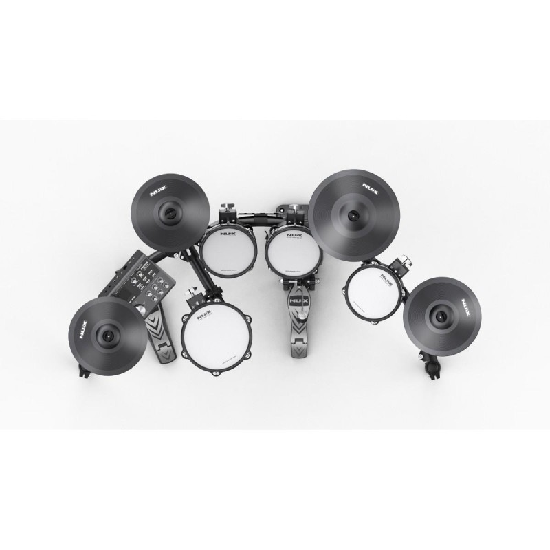NUX collaborates with REMO, the world-renowned drumhead brand, and equips DM -7X with all excellent REMO mesh heads. Enhanced by the latest Dual-Triggering technology (head and rim), DM-7X's 10" NDP-10 snare and the 8" NDP-8 toms provide accurate triggering and large strike area, together with authentic acoustic feel. Meanwhile, with the advanced velocity-sensitive drum pads and cymbals, you can set parameters for your drum triggers to ensure the most accurate and natural response. DM-7X also features 30 precisely-sampled studio kits and a customizable sound library, which delivers the most realistic and expressive drum sounds. In addition, practice mode offers recording and 5 types of coach functions, and various effects are available to further expand the playability.