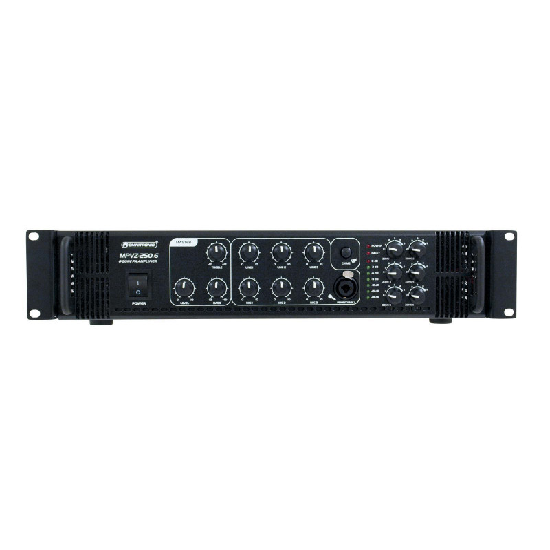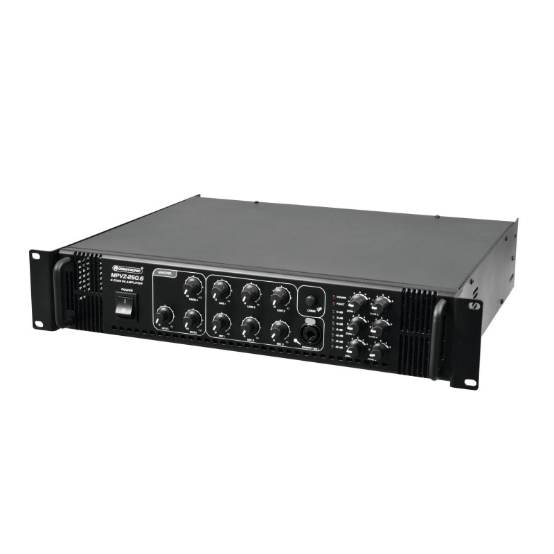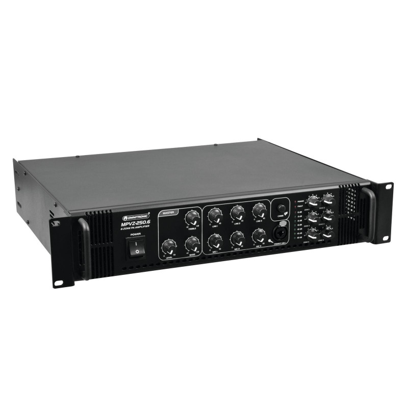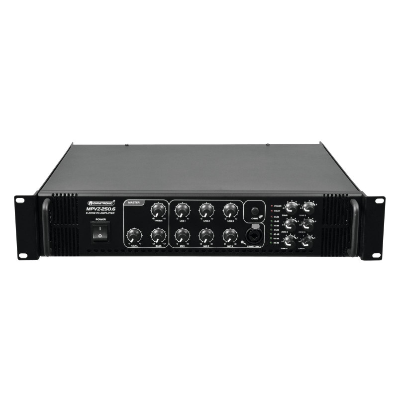 6-zone PA mono mixing amplifier, 250 watts, adjustable zones