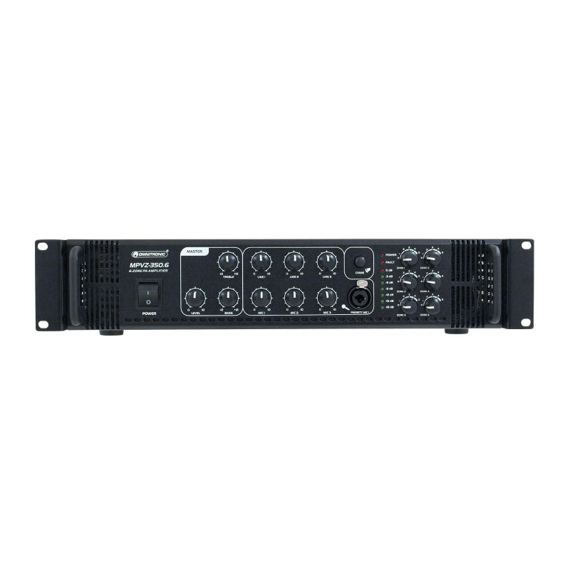 6-zone PA mono mixing amplifier, 350 watts, adjustable zones