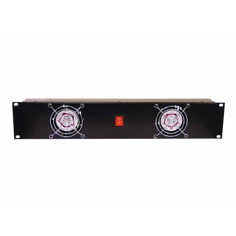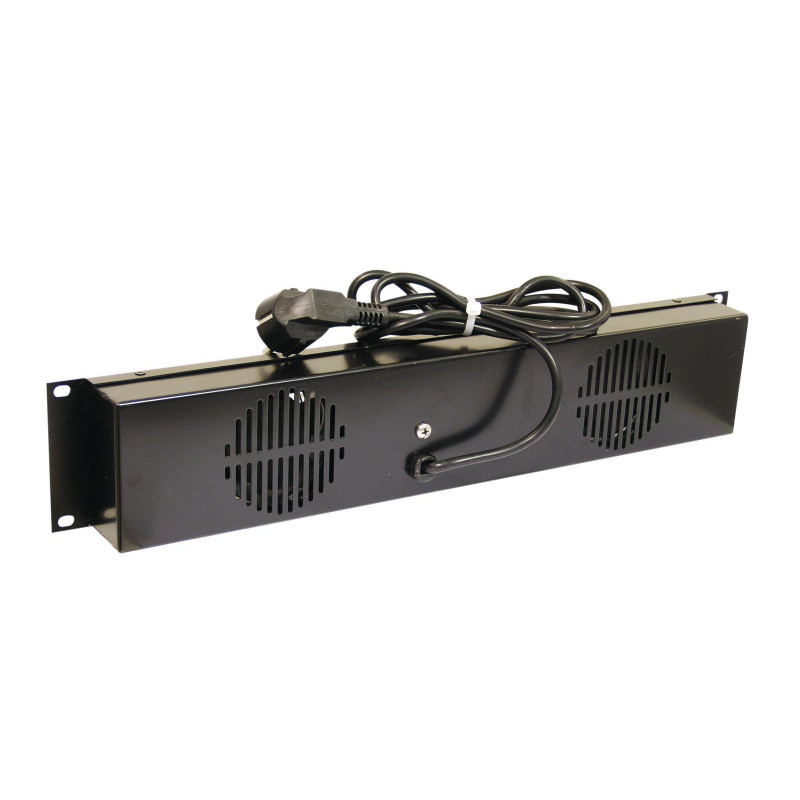 Rack panel with two ventilation fans, ready for connection to the mains