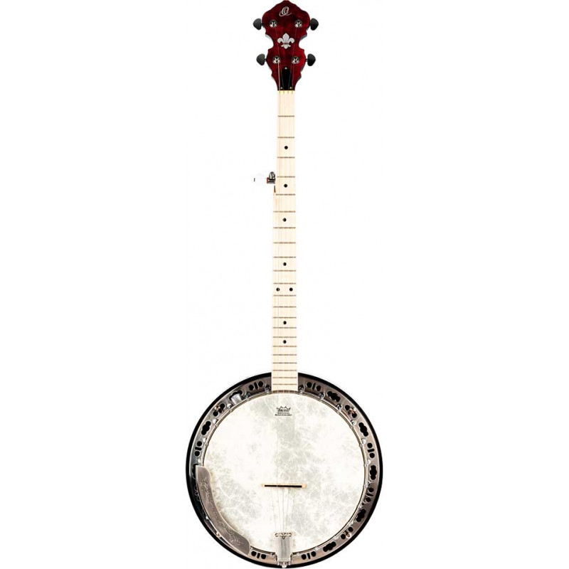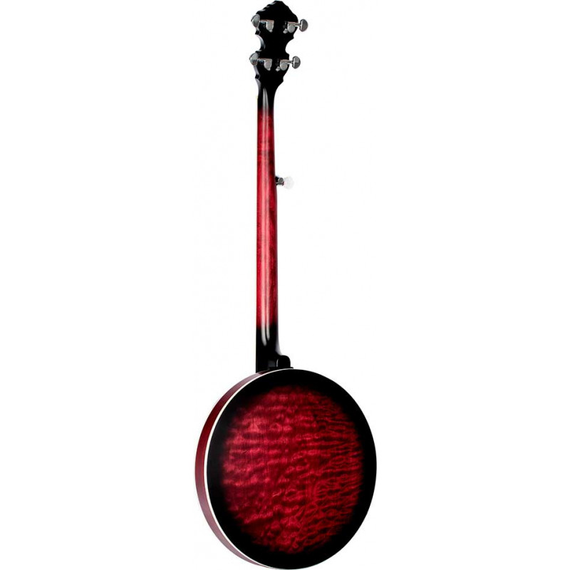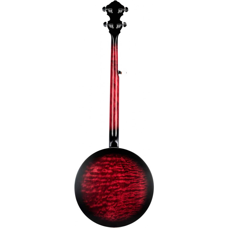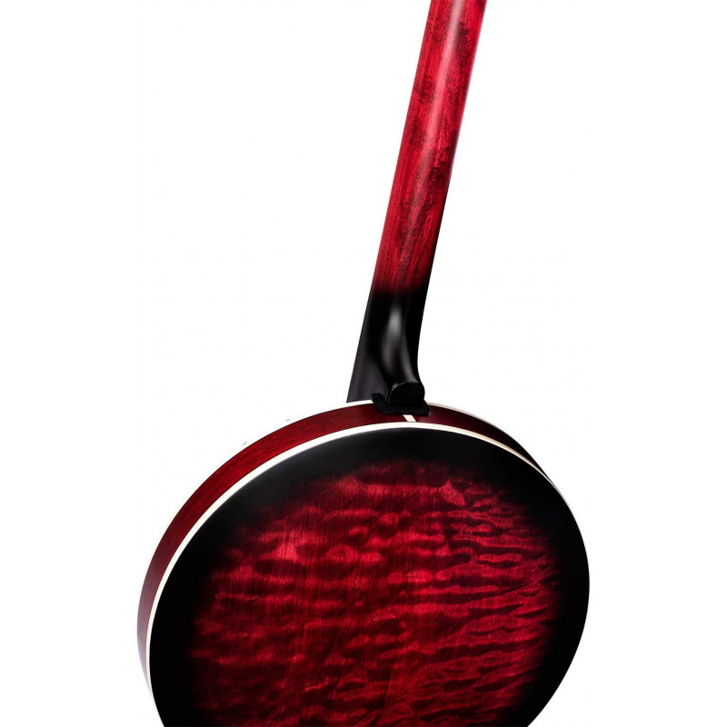 BANJO OBJE400TFR Falcon series 5-string electrified banjo. Transnaparent fade red color. Resonator the ``quilted'' maple. Semi glossy finish. Extra solid maple neck. Maple fingerboard. Brass ring with 24 tensioners. Polished nickel hardware. Remo fiberskin style head. Passive electronics with pickup and volume control. Deluxe case included.