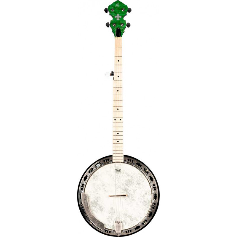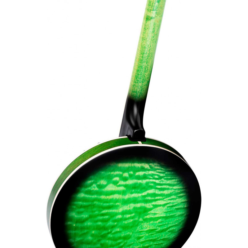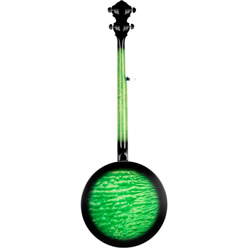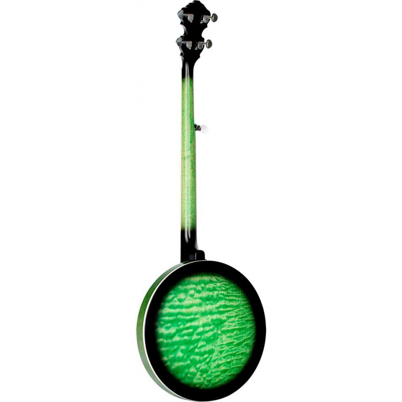BANJO OBJE400TGR Falcon series 5-string electrified banjo. Transparent green color. Resonator the ``quilted'' maple. Semi glossy finish. Extra solid maple neck. Maple fingerboard. Brass ring with 24 tensioners. Polished nickel hardware. Remo fiberskin style head. Passive electronics with pickup and volume control. Deluxe case included.