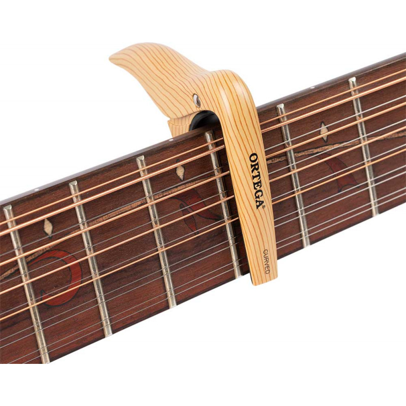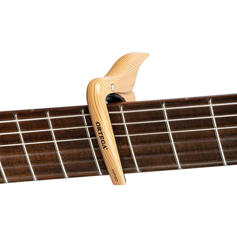 FLAT CAPO (CLASSIC) OCAPOCV-MAD Capo made of aluminum alloy and maple style design. This imitation wood finish combines especially well with guitars that also have a natural finish. Compatible with curved fingerboards (acoustic guitars)