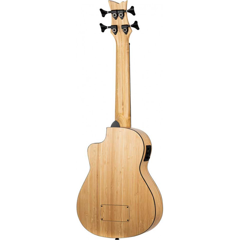 BASS UKELELE Each of the instruments in the Bamboo series is made of natural solid bamboo. You can choose between soprano, concert, tenor or bass ukulele. These ukuleles feature a MagusUke preamp, cutaway, and black Graph Tech Ratio tuners. The bass uke comes with an F hole and beautiful black hardware. All of these instruments are available in 'natural' or 'jean stone wash' finish.