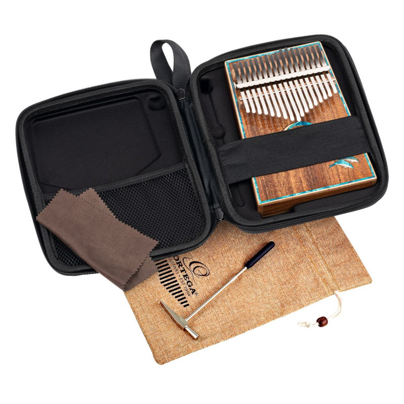 KALIMBA Acoustic Kalimba made entirely of solid acacia - ANNIVERSARY SERIES - dolphin inlays, including 30th anniversary case Ortega's handcrafted Kalimbas combine the legacy of their African origins with modern aspects. Carefully selected and spectacular looking tonewoods, the crystal clear tonal experience encourages unlimited creativity and musical enjoyment.