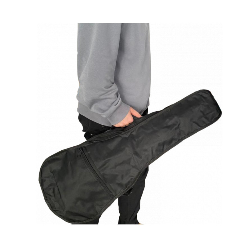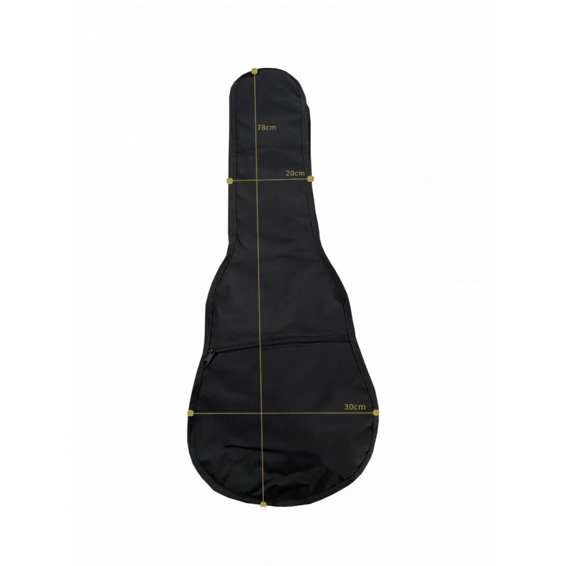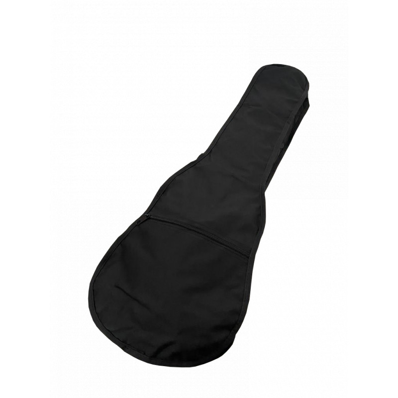 1/4 guitar case composed mainly of resistant black nylon completely without logo, has a side zipper that opens the case completely for convenient storage of the instrument, the zipper has two handles with holes in the middle of these two handles for the possible use of a secure closure by means of a padlock. It has a left side handle for its comfortable transport, just behind the cover it has two adjustable shoulder straps for the use of the cover as if it were a backpack, it also has a front pocket with zipper closure perfect for store accessories of our instrument or sheet music.