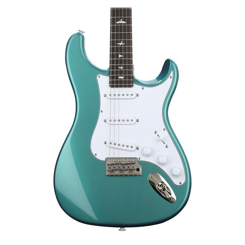 ST ELECTRIC GUITAR John Mayer Silver Sky Signature model. Inverted PRS blade design. Alder body. Bolt-on maple neck, 22 frets, 25.5? scale. Typical Mayer 635JM profile and 7.25? fingerboard radius. Rosewood fretboard. Inlays: Birds (Small). Bone nut. PRS steel tremolo bridge with Gen-III hardware. TunersVintage Style with PRS locking design. 3 single pickups 635JM. Curved molded metal plate on jack connection. Redesigned potentiometers. Double action PRS core, accessible from the front of the blade for greater ease. Volume and 2 Tone controls, with a 5-position selector. Includes cover.