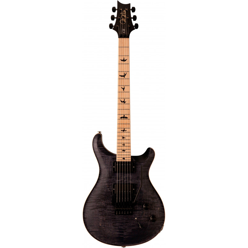 METAL ELECTRIC GUITAR Electric guitar. Model DW CE 24 ''Floyd'' Dustie Waring Signature. Mahogany body. Maple top. Satin maple neck. Bolt-on. Maple Fingerboard 24 frets. Scale 25''. Slightly modified Pattern Thin neck. Inlays: black birds. Bridge: Floyd Rose 1000 tremolo system. Machine heads: PRS 'Low Mass' locking, satin black. Pickups: Mojotone 'DW Tomahawk Gen 2'. Controls: Volume and Tone, 5-position Blade selector. Includes cover.
