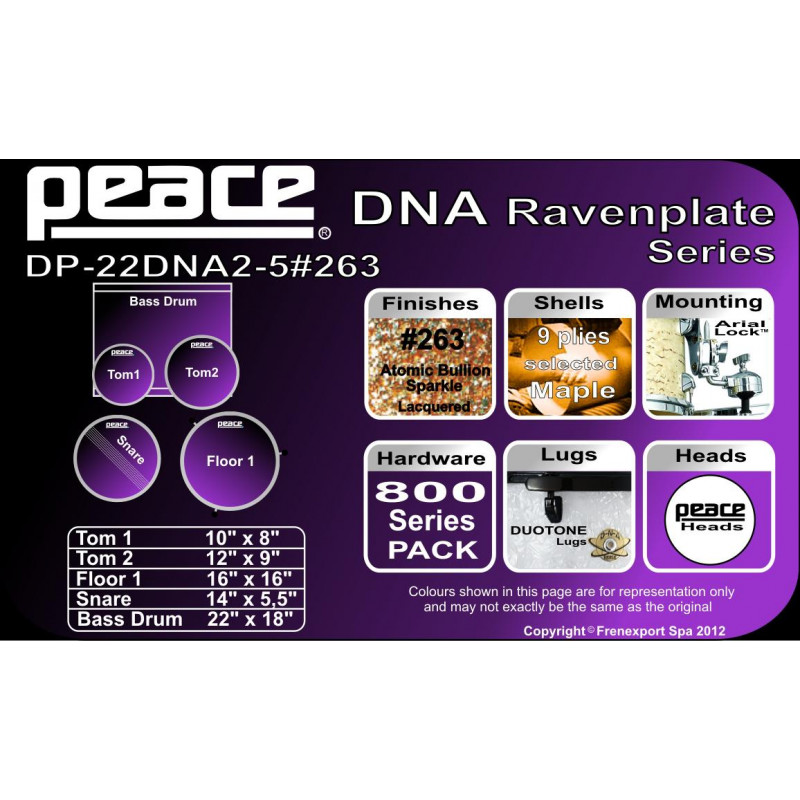 - Duotone low-mass low-profile lugs DA-120 (Ravenplate finishes) - 6 on Toms, 8 on Floor Tom, 10 on Snare and BassDrum