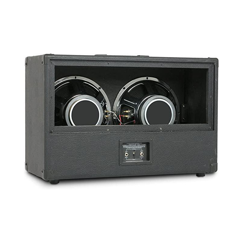 GUITAR BAFFLE '212-6. Guitar display in 212 format. 50 W RMS 16 Ohm / mono - 8 Ohm / stereo. 2 12 '' Celestion Greenback 25 speakers. Stereo / Mono jack inputs. Black Tolex finish. Handle on top. Dimensions 57L x 84A x 41P cm. - Weight approx. 19.7 Kg. '