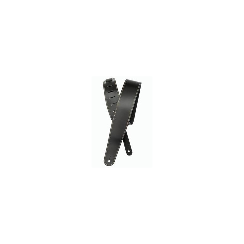 GUITAR STRAP / BASS Edged leather strap, width 6.3 cm, black. Adjustable length between 113 and 135 cm.