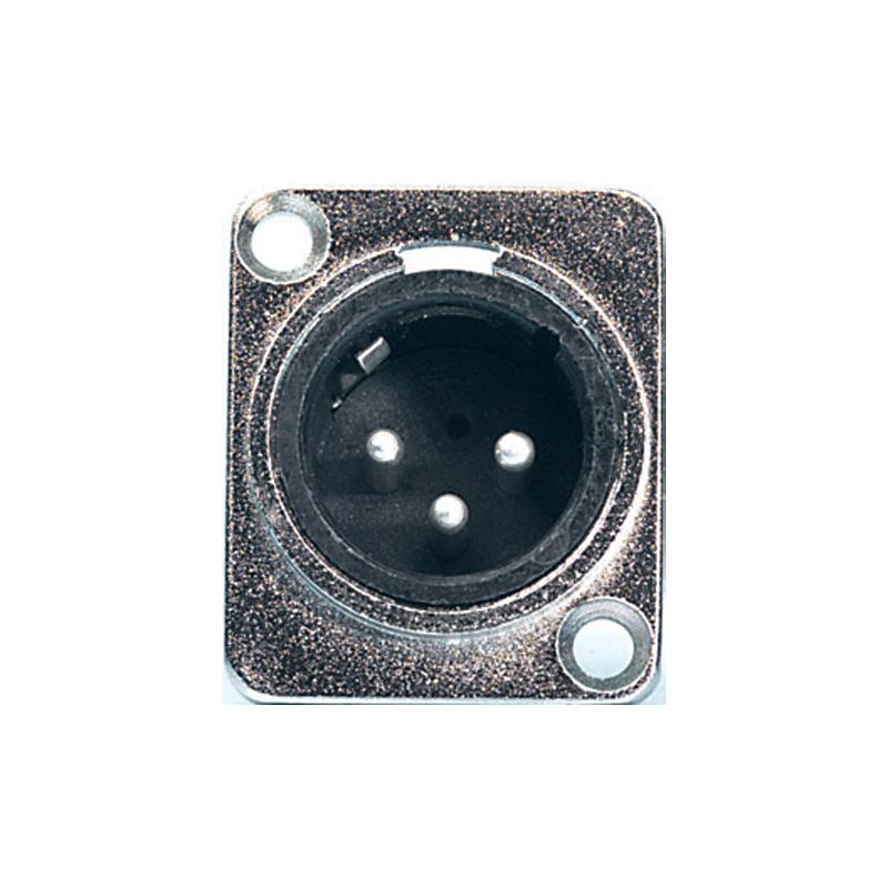 XLR CONNECTOR Male XLR panel connector for soldering in 3-pole aluminum with clip. Nickel plated color.