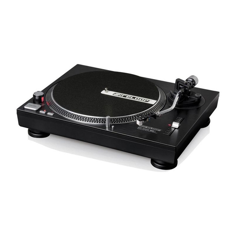 TURNTABLE The Reloop RMP-1000 MK2 is a belt drive DJ turntable with high power motor. The RP-1000 MK2 turntable is perfect for DJ or HiFi. Its robust metal case stands out for its great stability in this price category, as well as its reinforced pick-up arm that characterize this unit and demonstrate Reloop's commitment to quality from the first price levels. Includes: Audio Technica 3600 L system capsule, capsule holder and slider • Type: 2 speeds (33 1/3, 45 U/min.), fully manual • Motor: DC electric motor • Torque at start: 1000 g/cm • Start/Stop time: 1 sec. • Transition in change of the number of revolutions: 1 sec. • Sync Jitter: 0.25% WRMS at 33 1/3 U/min. • Vibrations: more than 50 dB (DIN-B) • Area-Anti-Skating: 0-7 g • Adjustable force on the needle support surface: 0-4 g • Rated total current consumption: 7.5 Watt • Power: 115/230 V, 50/60 Hz • Measurements: 450 x 352 x 144 mm • Weight: 8.6kg
