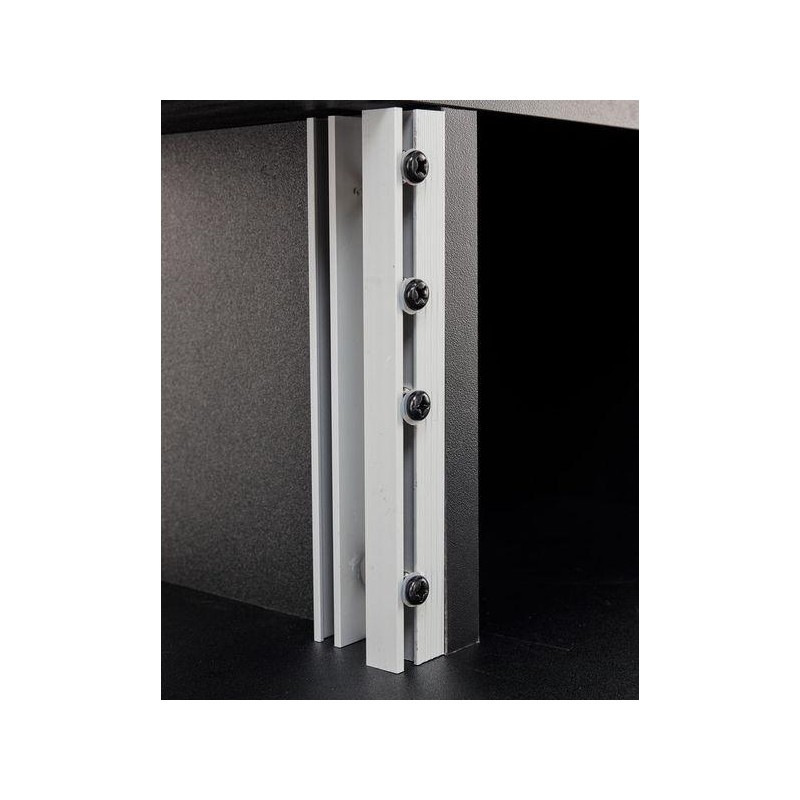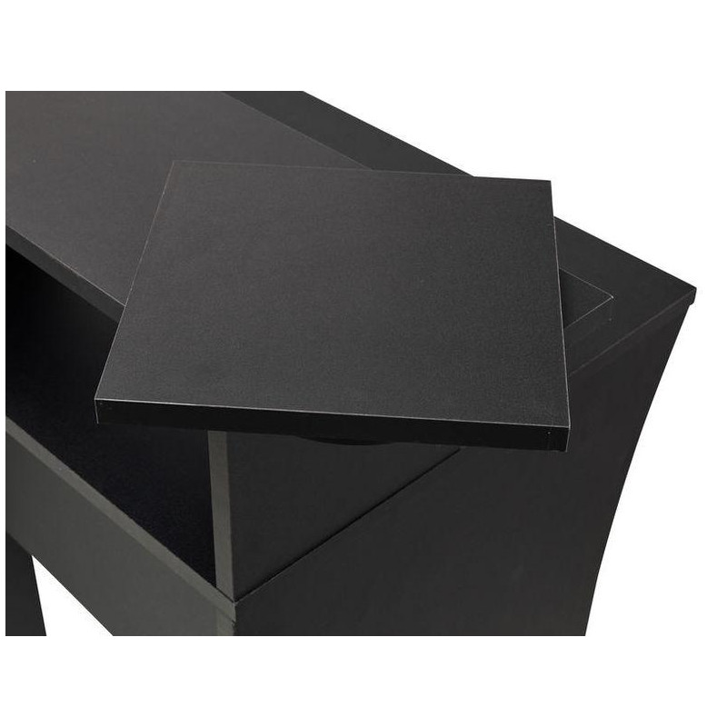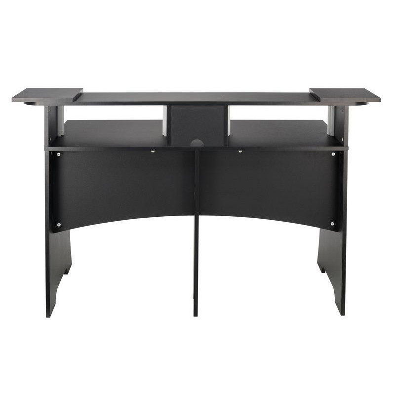 RECORDING STUDIO TABLE 'Furniture for music studio • Very stable • Extendable tray for keyboards • 2 two spaces for mounting 19'' racks of 4U each • With cavities for cable routing • Space for keyboard, mouse, mixer studio and additional equipment • Material: MDF wood • Dimensions of the lower table: 1,302 x 760 x 551 mm (width x height x depth) • Dimensions of the upper shelf, including speakers: 1,560 x 980 x 551 mm (width x height x depth) • Removable tray dimensions: 1,230 mm (width) • Weight: 39.5 kg • Colour: Black'