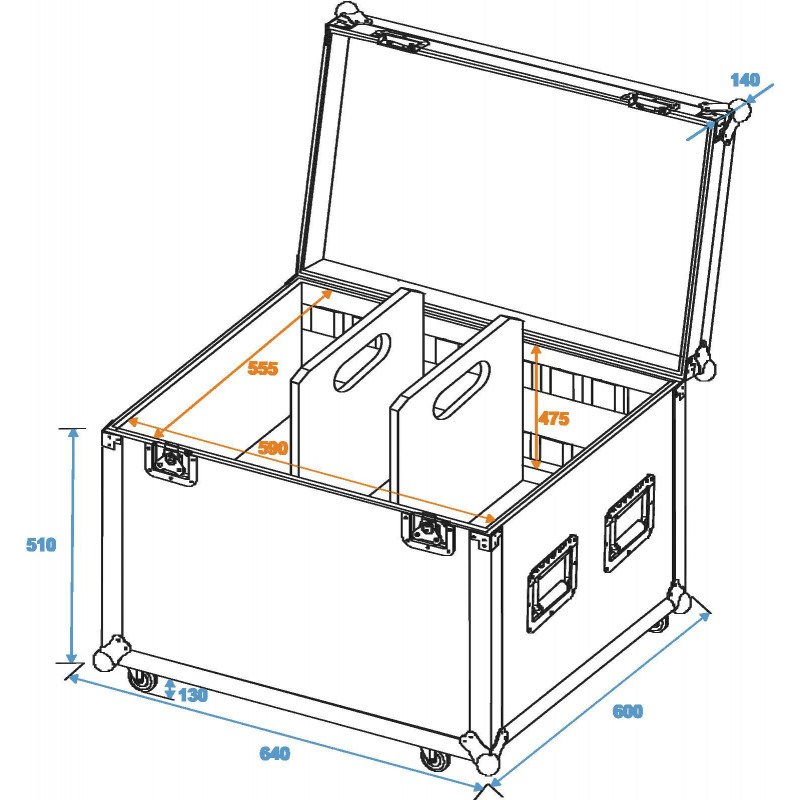 PRO flightcase with castors and 1 divider